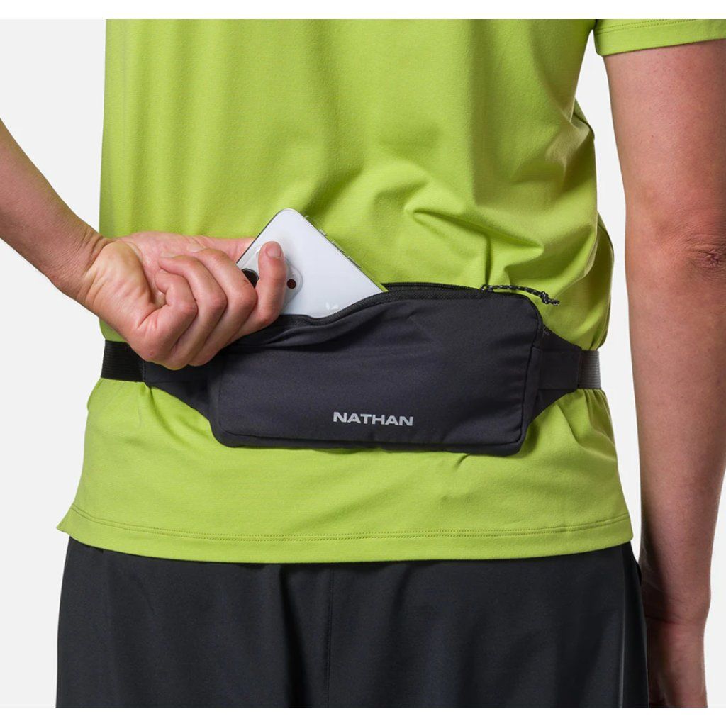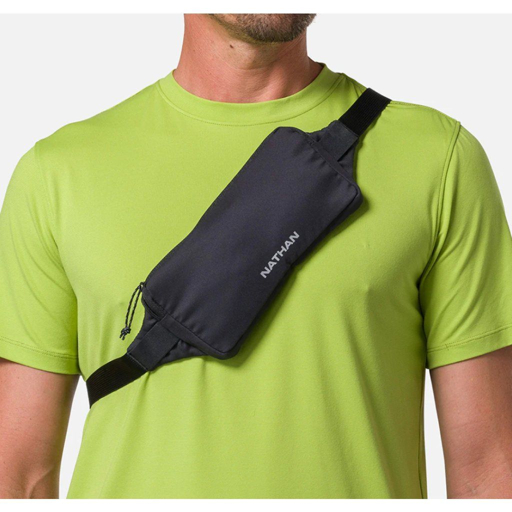 Minimalistický běžecký pás, který lze nosit také křížem přes tělo (crossbody).